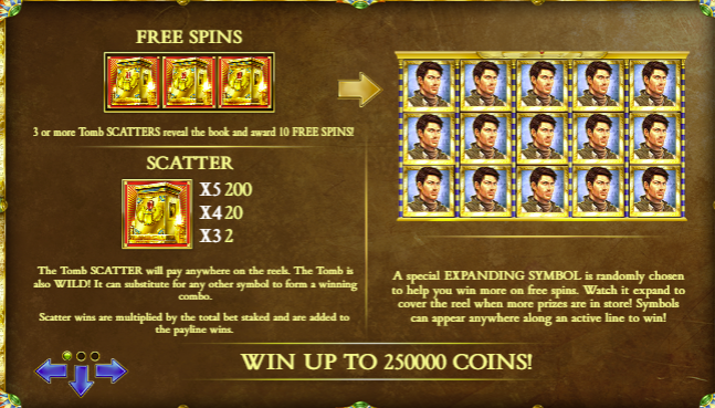 - Free Spins Feature: Land three or more Book scatter symbols to trigger 10 free spins with a special expanding symbol.